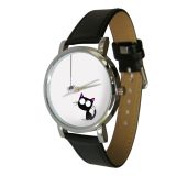 Add a playful twist to your style with this adorable wristwatch featuring a wide-eyed black cat fixated on a dangling spider. The minimalist white dial puts all the focus on the charming cartoon illustration, capturing a moment of curiosity and suspense that’s sure to make you smile every time you check the time. The cat’s expressive face and the quirky spider bring a touch of humor and personality to this fun accessory.