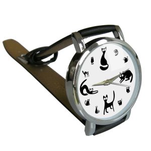 The round polished metal case and classic black leather strap combine comfort with durability for everyday wear. An adjustable buckle offers a secure, customized fit, making this watch suitable for all ages, including children and adults with severe allergies.